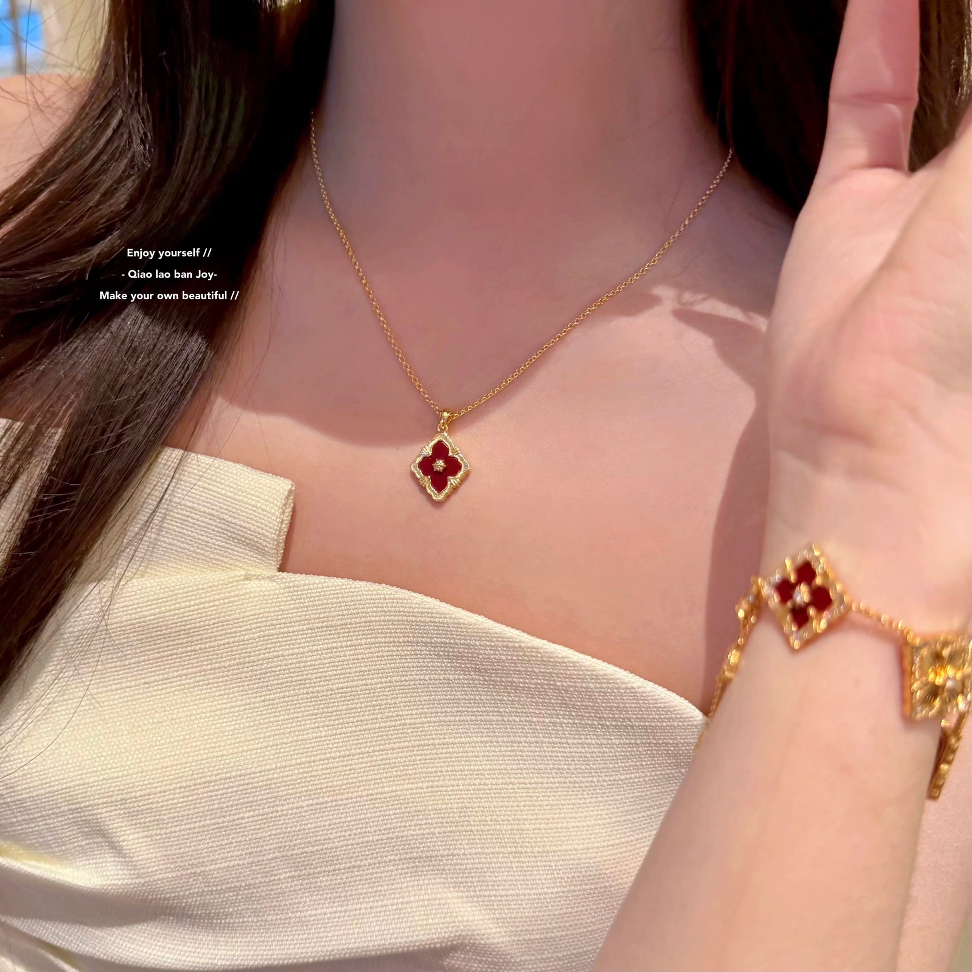 This necklace features a large, brushed clover pendant with a subtle geometric edge—quietly vintage, softly bold. Inspired by the idea of good luck and steady love, it’s designed to be worn close to the collarbone as a small reminder: keep the good things near, and let time do the rest.